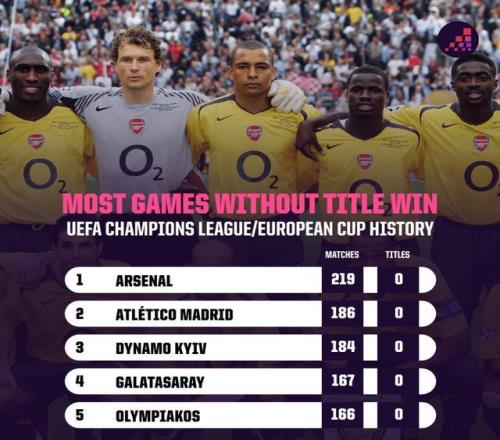目前,阿森納在英超積分榜上處于絕佳位置,他們有望自2004年以來首次捧起英超冠軍獎杯。而在本周中,槍手的注意力將再次轉向歐冠賽場。無論是在現行賽制下,還是在歐洲冠軍杯時代,槍手從未染指過歐冠冠軍獎杯。