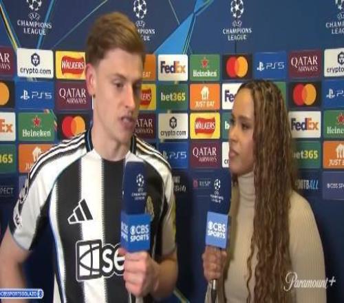 歐冠1/8決賽首回合,紐卡主場(chǎng)1-1戰(zhàn)平巴薩,紐卡前鋒哈維-巴恩斯賽后接受了CBS體育的采訪。
