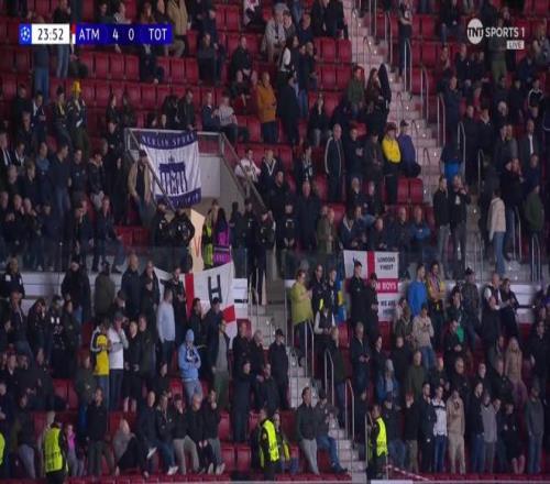 據(jù)《太陽(yáng)報(bào)》報(bào)道,在上半場(chǎng)僅僅25分鐘的時(shí)候,熱刺的客場(chǎng)球迷區(qū)就已經(jīng)出現(xiàn)大量空座。