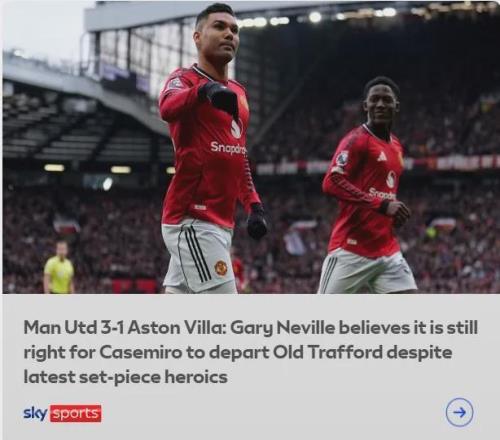 對此天空體育表示,曼聯(lián)擁有卡塞米羅的合同延長條款,但雙方已經(jīng)就不續(xù)約達成一致,并且目前沒有反轉的跡象。