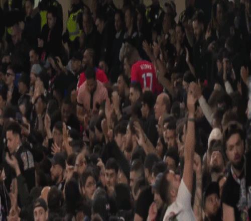 第54分鐘,比分領(lǐng)先,巴黎球迷興高采烈高聲歌唱