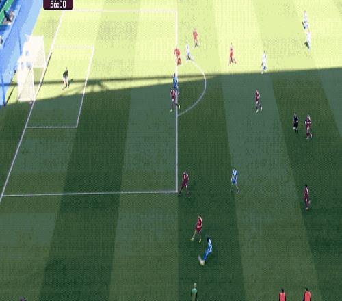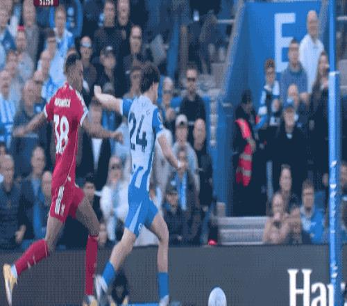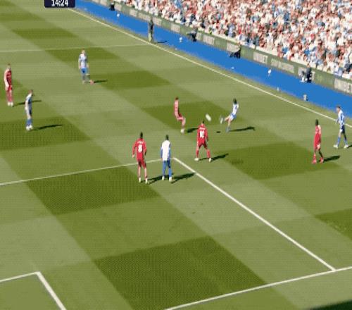 第14分鐘,馬馬達什維利和科納特配合失誤,給了布萊頓界外球??ǖ賷W魯邊路傳中,戈麥斯頭球擺渡,科納特根本沒有起跳,維爾貝克頭槌破門。
