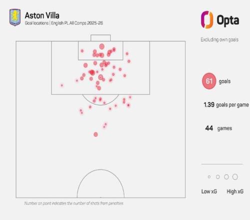 據(jù)著名數(shù)據(jù)統(tǒng)計(jì)機(jī)構(gòu)Opta統(tǒng)計(jì),阿斯頓維拉本賽季已在禁區(qū)外打入18球,該數(shù)據(jù)冠絕五大聯(lián)賽。