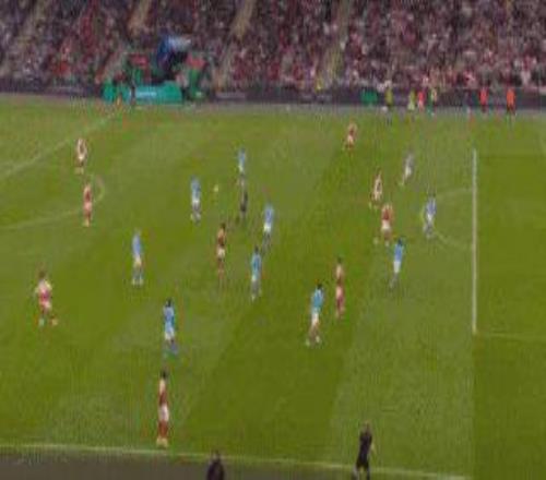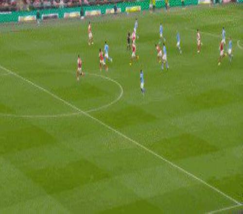 45’塞梅尼奧突破賴斯完成下底傳中,哈蘭德在本·懷特干擾下頭球頂高。
