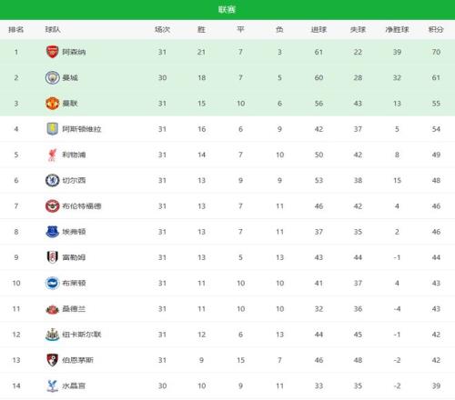 曼城2-0阿森納