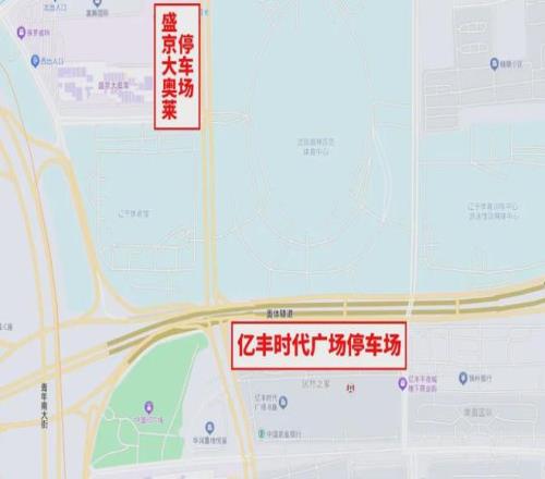 ●盛京大奧萊停車場:盛京大奧萊廣場(地上+地下,可停放車輛約2400臺)。