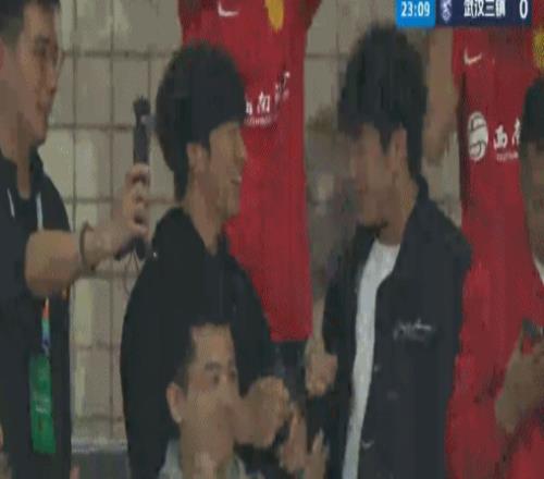 鏡頭轉(zhuǎn)向看臺,李鎮(zhèn)全一臉興奮,絲毫沒有受到禁賽的影響,不斷為隊友們鼓掌。