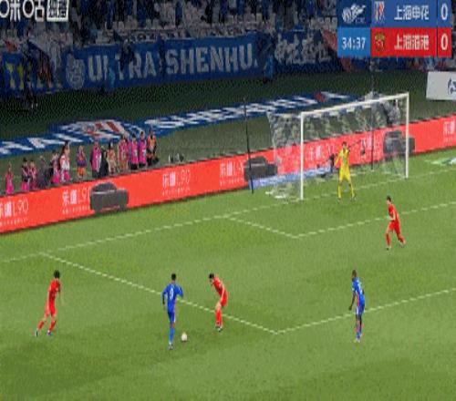 第11分鐘,申花錯(cuò)失良機(jī)。特謝拉挑球過(guò)掉張琳芃后直塞,拉唐絕佳單刀機(jī)會(huì)推射稍稍打偏。