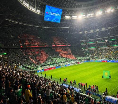 北京時間中超焦點戰(zhàn)北京國安vs成都蓉城的比賽在工體打響。賽前,工體展示張玉寧、法比奧巨型Tifo。