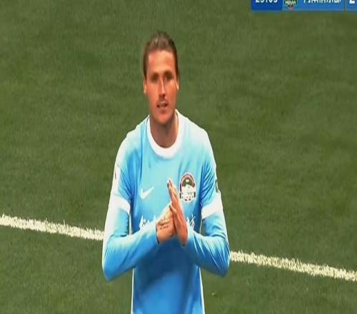 王國(guó)明出擊失誤,卡扎伊什維利挑射破門,河南隊(duì)0-1落后山東泰山。
