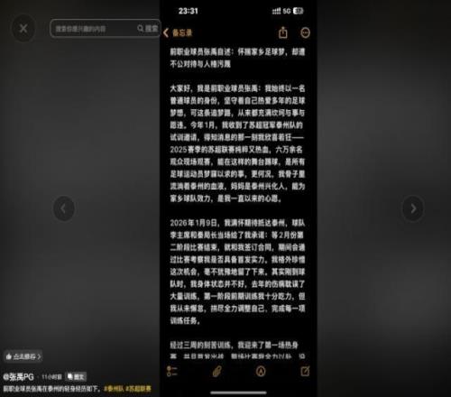 4月16日凌晨,前中超河北隊球員張禹在社媒發(fā)布長文,稱在蘇超泰州隊試訓(xùn)時遭到了不公正的對待,還透露主教練對其辱罵、造謠、惡意侮辱。