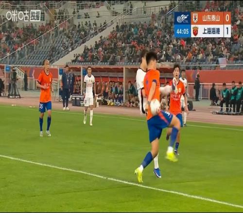 安永佳投訴手球!安永佳傳中打在彭嘯身上出界,主裁判給泰山門球