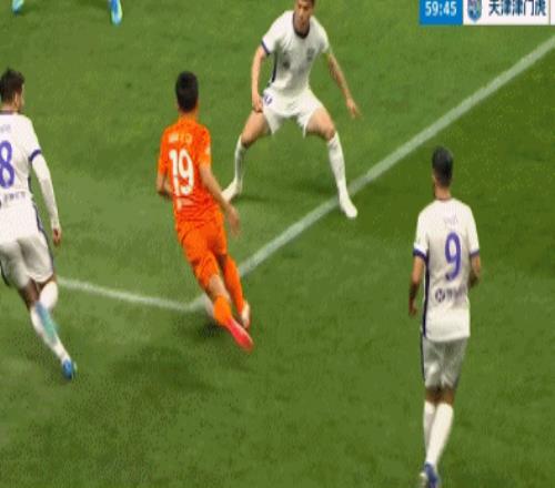 第41分鐘,場上僵局被打破。王政豪后場長傳,基萊斯反越位形成單刀,他搶在鮑亞雄出擊前吊射得手,津門虎客場1球領(lǐng)先。