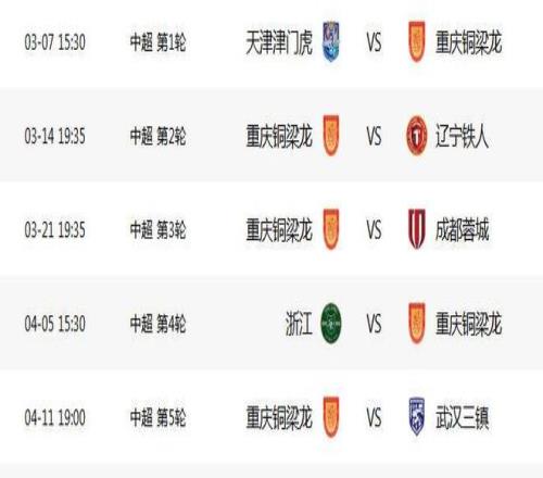 中超聯(lián)賽賽程出爐,前五輪重慶銅梁龍“三主兩客”,中超第1輪客戰(zhàn)天津津門虎,爭(zhēng)取1分;隨后迎來(lái)兩連主,第2輪主場(chǎng)迎戰(zhàn)遼寧鐵人,力爭(zhēng)3分;第3輪主場(chǎng)迎戰(zhàn)成都蓉城,拿分太難。第4輪客戰(zhàn)浙江,爭(zhēng)取帶走1分,第5輪主場(chǎng)迎戰(zhàn)武漢三鎮(zhèn),爭(zhēng)取3分。當(dāng)然,這只是“一廂情愿”,每場(chǎng)都是戰(zhàn)術(shù)博弈,實(shí)力比拼。