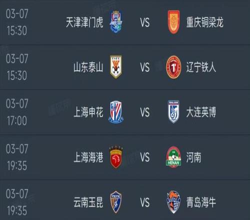 中超第一輪明天3月7日賽程:山東PK遼寧,申花PK大連,海港PK河南