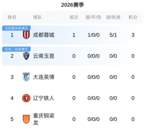 新賽季中超正式開打,揭幕戰(zhàn)在成都蓉城的主場進(jìn)行,這也是成都時(shí)隔18年再一次舉辦中超的開幕式,上一次還是2008年,那時(shí)候成都的中超球隊(duì)還是成都謝菲聯(lián)。中超首戰(zhàn)由成都蓉城對陣深圳新鵬城,憑借韋林頓的梅開二度和胡何韜等人的進(jìn)球,蓉城主場5-1大勝新鵬城,為新賽季的中超開了一個好頭。在這場比賽之后,本賽季的中超積分榜也發(fā)生了新的變化。