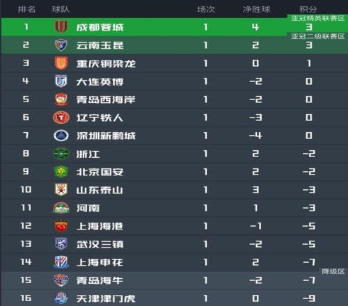中超形勢:蓉城領跑+津門虎墊底!下輪2場焦點戰(zhàn)4隊有望抹去負數(shù)