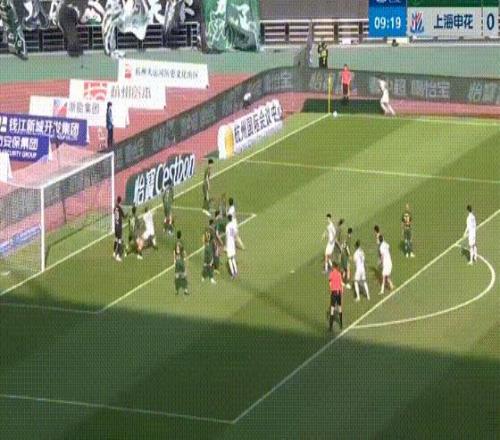 第10分鐘,浙江隊角球開到禁區(qū)被頂出,特謝拉迎球凌空射門打進,上海申花客場1-0領先。