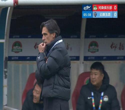 西班牙人喬迪的傳控足球風(fēng)格極具觀賞性,其在浙江時(shí)代就折服眾多球迷,如今來到云南風(fēng)采依舊,面對(duì)已拿中超衛(wèi)冕冠軍祭旗的河南隊(duì)仍傾巢而出——相當(dāng)多的時(shí)間內(nèi),云南隊(duì)陣型幾乎全部壓過半場(chǎng),前場(chǎng)騷擾、中場(chǎng)圍堵,三條線不停給對(duì)手施加壓力。但這樣的陣型給后衛(wèi)線留下大片空間,誰不利用這空間才是傻子。所以整個(gè)上半場(chǎng)河南隊(duì)就只有一種戰(zhàn)術(shù)——堅(jiān)決防守反擊打身后。