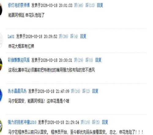 有球迷表示,國安配馬寧,能贏阿根廷。有網(wǎng)友估計(jì),這場比賽申花球員大概率會(huì)有紅牌。有球迷支招,認(rèn)為申花在賽前應(yīng)該讓特謝拉少說話。還有球迷寫道:“馬寧在程序員以前只認(rèn)國安。 程序員開始,至今都優(yōu)先碼頭接著國安。 總之,申花危險(xiǎn)了?。?!