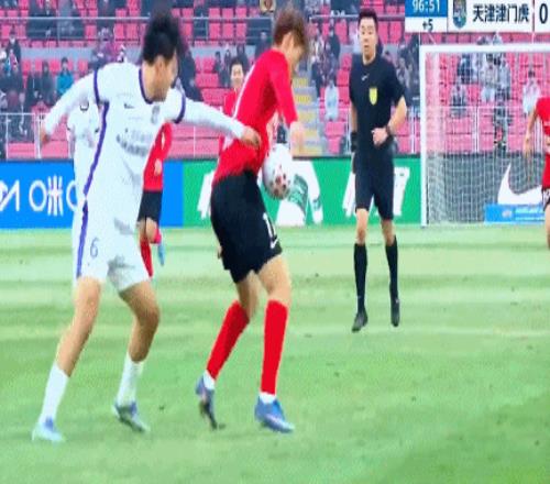 從慢鏡頭來看,王獻鈞長時間拉扯田玉達球衣,在后者進入禁區(qū)之后仍然沒有松手。回看慢鏡頭之后,主裁判判罰點球并且向王獻鈞出示紅牌。