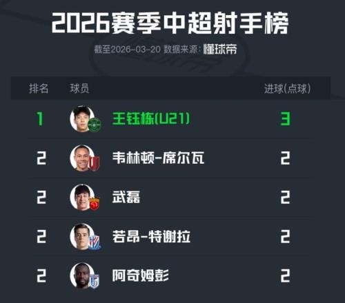 北京時(shí)間3月20日,浙江隊(duì)在客場(chǎng)4-1戰(zhàn)勝青島海牛,王鈺棟本場(chǎng)比賽梅開二度。憑借此役兩球以及上輪的進(jìn)球,王鈺棟2場(chǎng)比賽打進(jìn)3球,暫時(shí)領(lǐng)跑中超射手榜。