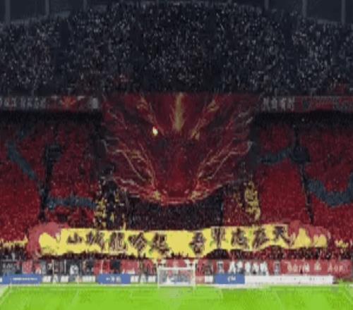 比賽開始時(shí),重慶主場的氣氛非常熱烈!TIFO很有氣勢,一條巨龍徐徐展開。