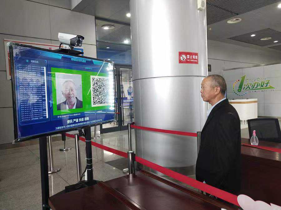 12月21日,翟峰軍老人來到開發區政務服務大廳,從市財金公司首創研發的“銀發綠色通道”通過,電子大屏幕上立刻顯示出他的信息和綠色健康通行碼。