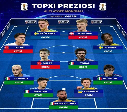 德轉(zhuǎn)列世預(yù)賽附加賽最貴11人:居萊爾領(lǐng)銜,意大利五人入選