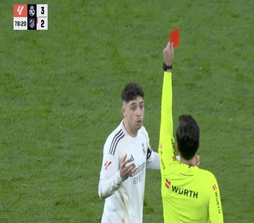 西甲第29輪,皇家馬德里主場(chǎng)對(duì)陣馬德里競(jìng)技,下半場(chǎng)巴爾韋德因犯規(guī)染紅,這也讓他成為皇家馬德里自17年后,首位在聯(lián)...
