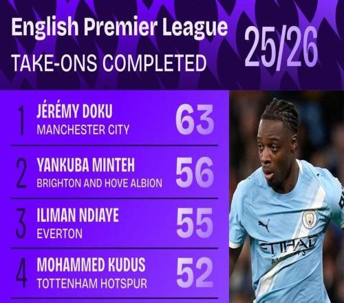 本賽季英超過(guò)人榜:多庫(kù)63次第1,薩卡、內(nèi)托、?;倏松习?/p>