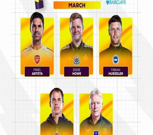 3月26日,英超官方公布了3月份最佳主教練候選名單,阿爾特塔領(lǐng)銜,埃迪-豪、莫耶斯、許爾策勒、勒布里斯在列。英...