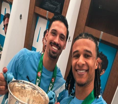 賴因德斯曬與獎杯合照:很自豪在這里贏得曼城生涯首冠