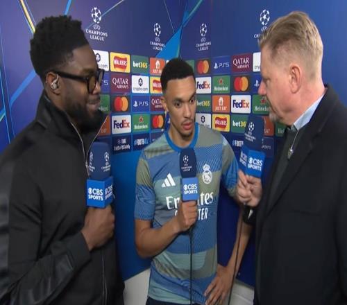 歐冠1/8決賽次回合,皇馬客場(chǎng)2-1戰(zhàn)勝曼城,皇馬后衛(wèi)阿諾德賽后接受了CBS體育的采訪。我們現(xiàn)在和特倫特在一起,而...