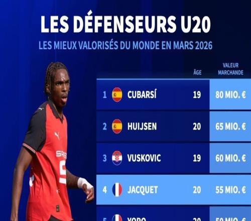 北京時間3月28日,在更新了法甲球員的身價之后,德轉(zhuǎn)列出了目前世界足壇身價排名前10的U20后衛(wèi),庫巴西以8000萬歐...