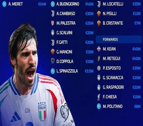 新一期意大利隊德轉(zhuǎn)身價榜:巴斯托尼、托納利8000萬歐元第1